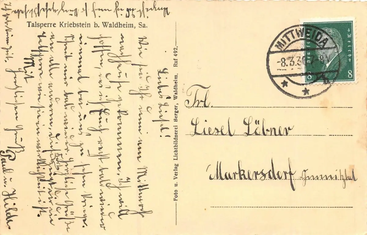 Rückseite: gelaufen 1936 von Mittweida