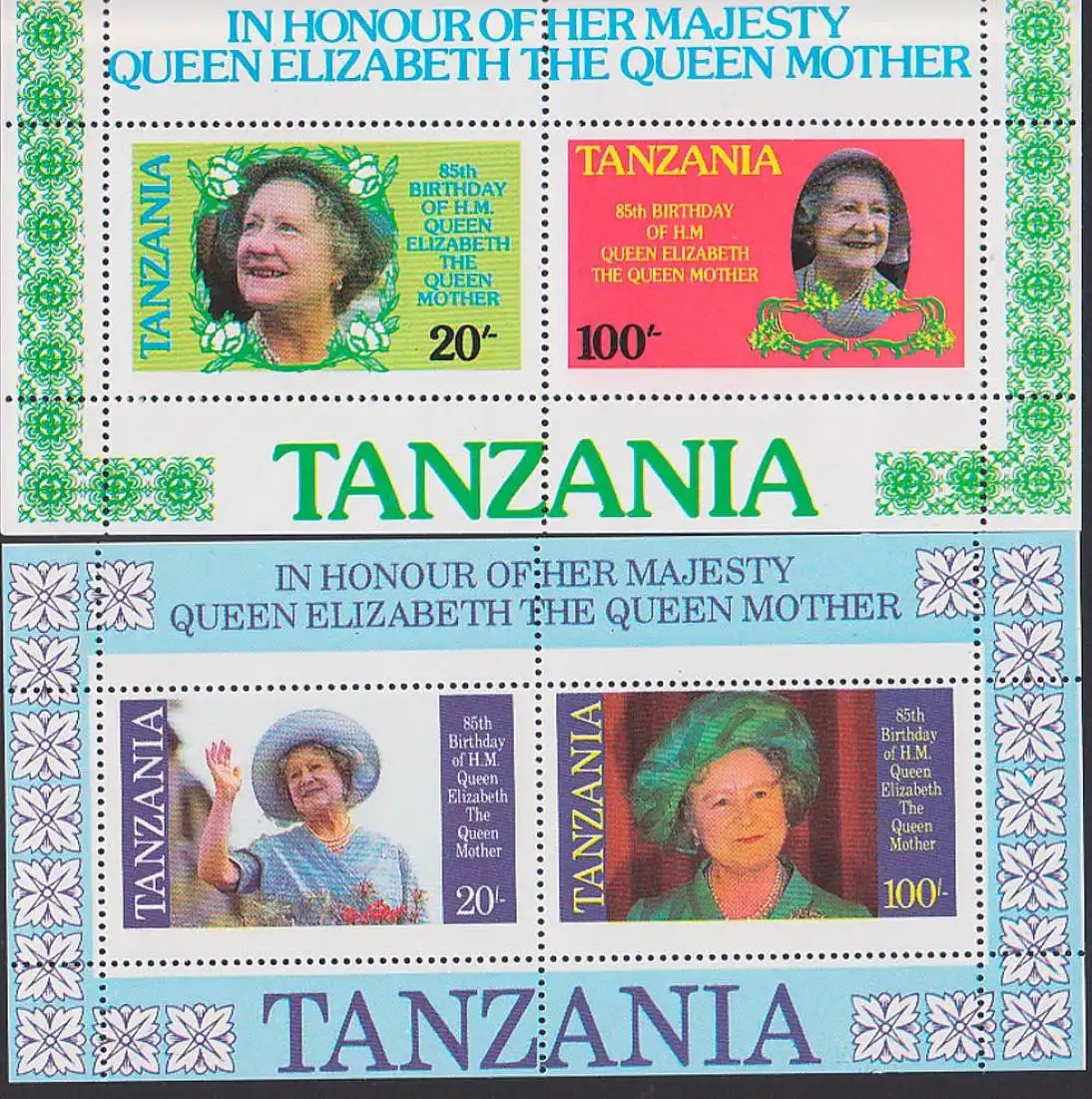 Tanzania Tansania Queen Elibath zwei Blöcke **, in Honour on her majesty and the Queen mother