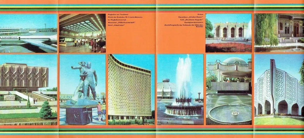 sehr guter Zustand, geringe Gebrauchs- und Alterungsspuren, Werbe-Prospekt der Stadt der Sowjetunion / Usbekistan, Papier, ca. 13,5 x 20, 8 Seiten mit 12 Bildern