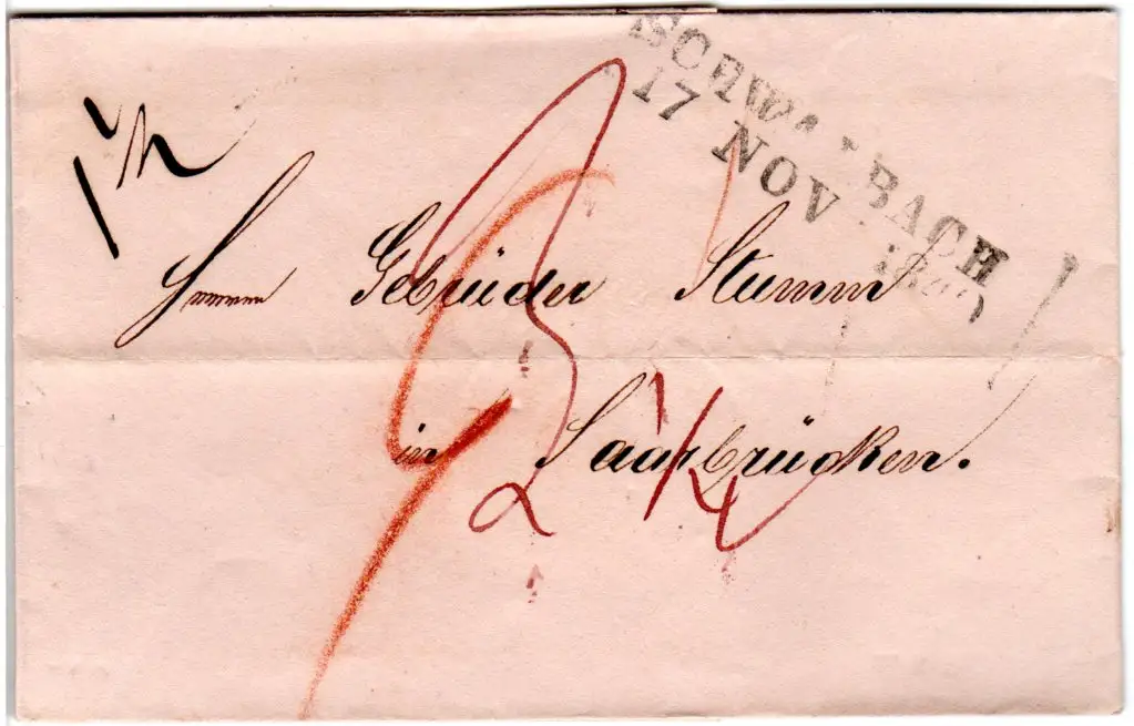 Taxis 1840, L2 Schwalbach auf Porto Brief n. Saarbrücken, Preussen