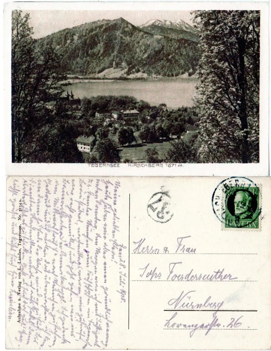 Tegernsee, Aussicht v. Hirschberg, 1918 v. Rottach Egern gebr. sw-AK