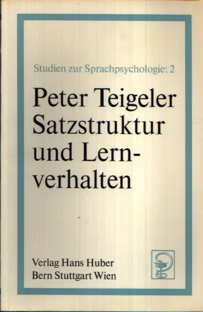 Satzstruktur und Lernverhalten; Peter Teigeler; Studien zur Sprachpsychologie; Sprachwissenschaft; Psychologie;Linguistik; Sprache; Lernverhaltensweise; Satzstrukturen; Sprachpsychologie; Syntaktische Strukturmodelle; Überblick über die Literatur; Selektions-Hypothese