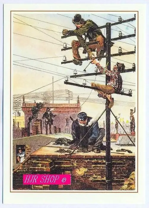 Telefonarbeiten auf den Dächern von Berlin, 1882, 500 Jahre Post