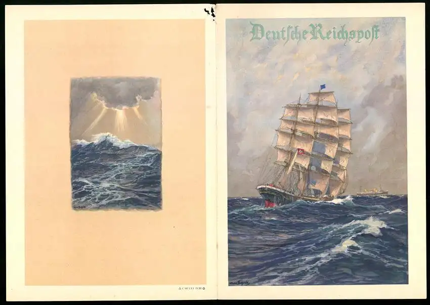 Telegramm Deutsche Reichspost, 1938, mit Segelschiff und stürmischer See auf der Aussenseite, Entwurf: Hans Bohrdt