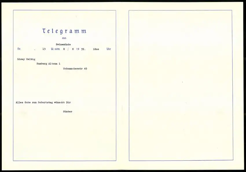Telegramm Deutsche Reichspost, 1939, Aussenseiten mit Segelschiff und stürmischer See, kunstvoll illustriert