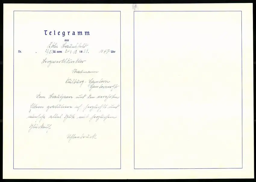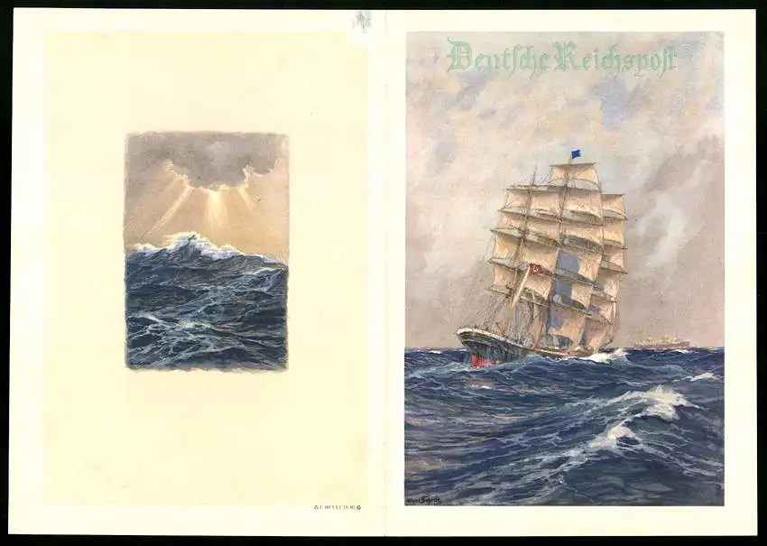 Telegramm Deutsche Reichspost, 1939, Segelschiff in stürmischer See und Sonnenstrahlen durch Wolken, Entwurf: Hans Bohrd