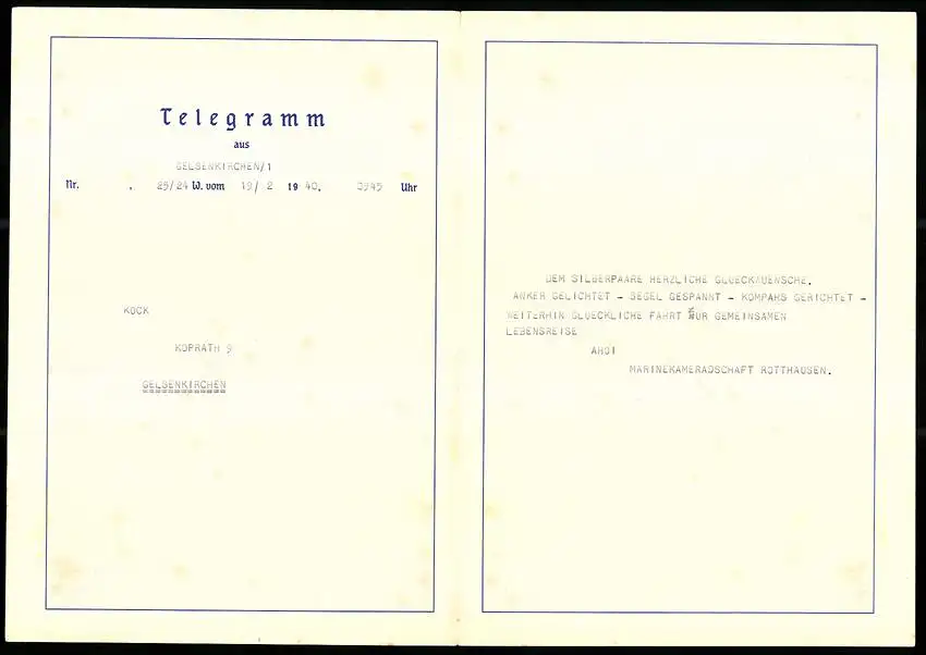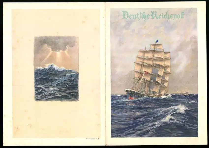 Telegramm Deutsche Reichspost, 1940, Segelschiff auf stürmischer See und Sonnenstrahlen, Entwurf: Hans Bohrdt