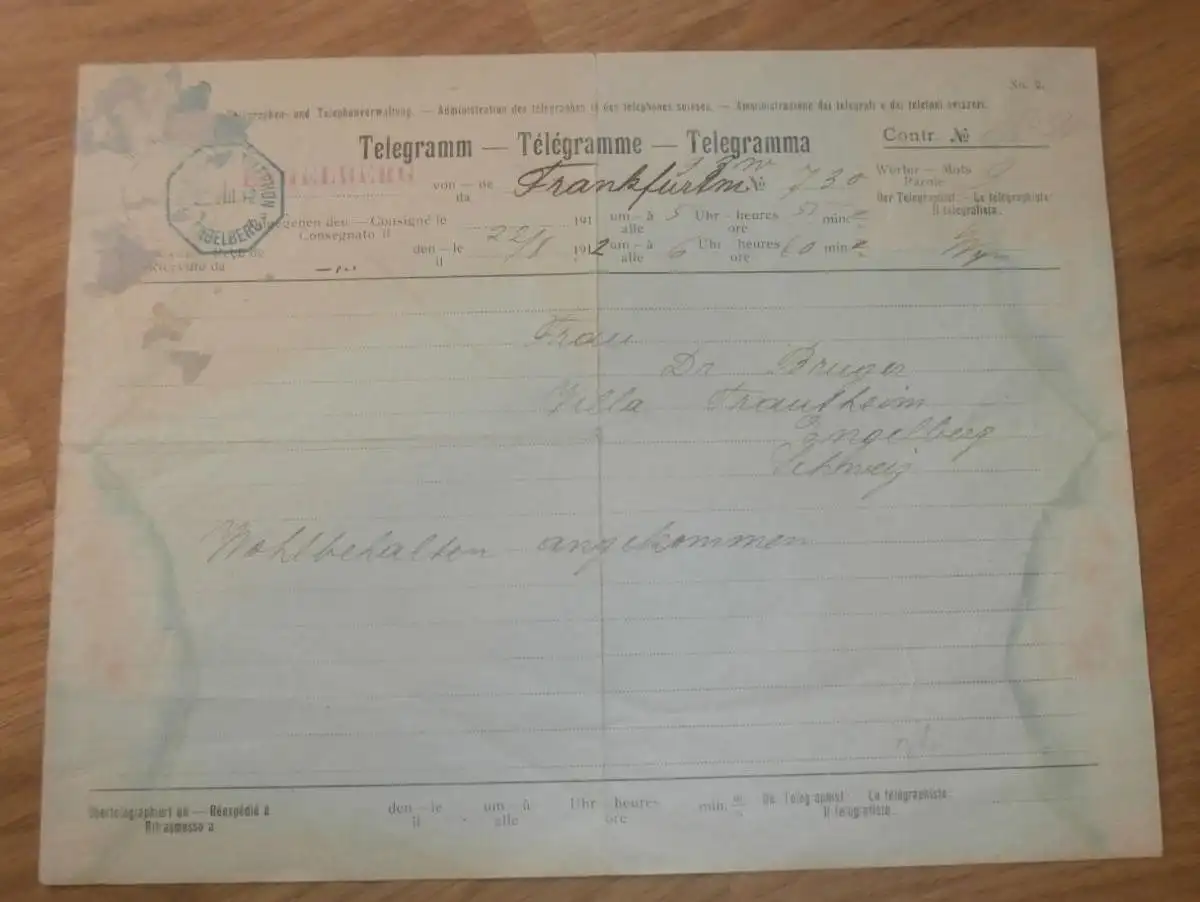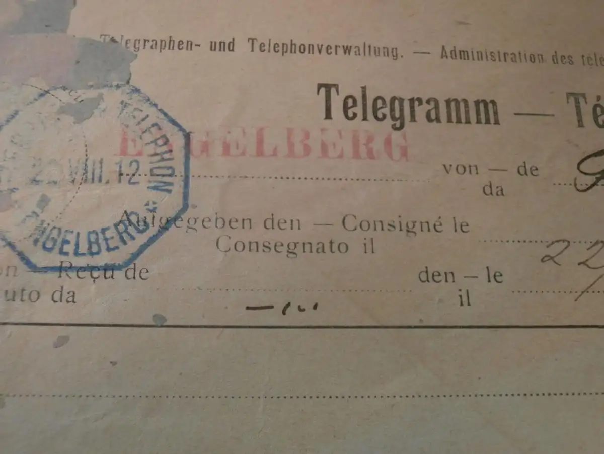 Telegramm - Engelberg i. Schweiz , 1912 !!!