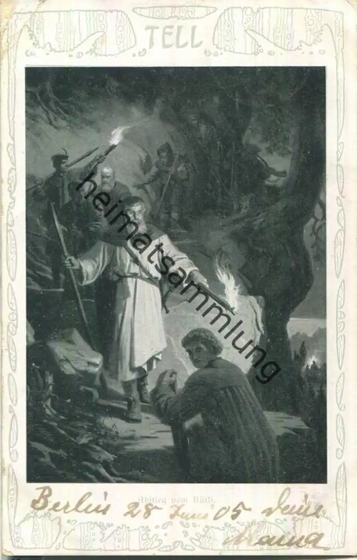 Tell - Abstieg vom Rütli - Verlag Theo Stroefer Nürnberg - leichte Gebrauchsspuren - Eckknick oben links (E99803) gel. 1905