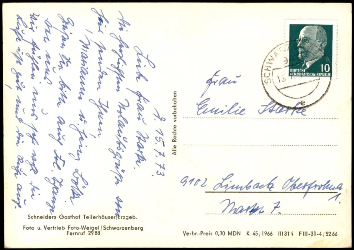 Tellerhäuser-Breitenbrunn Schneiders Gasthof im Erzgebirge zur DDR-Zeit 1973