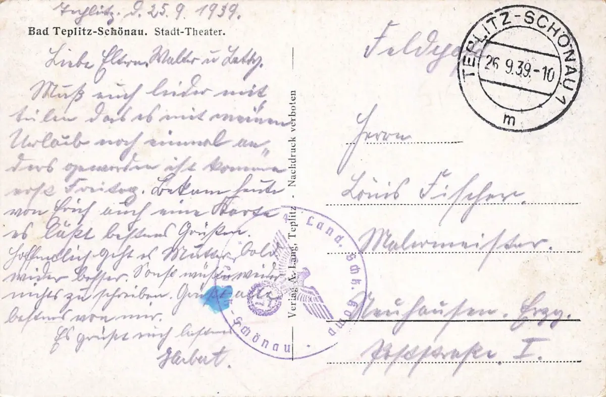 Teplitz-Schönau Teplice Stadt - Theater AK 1939