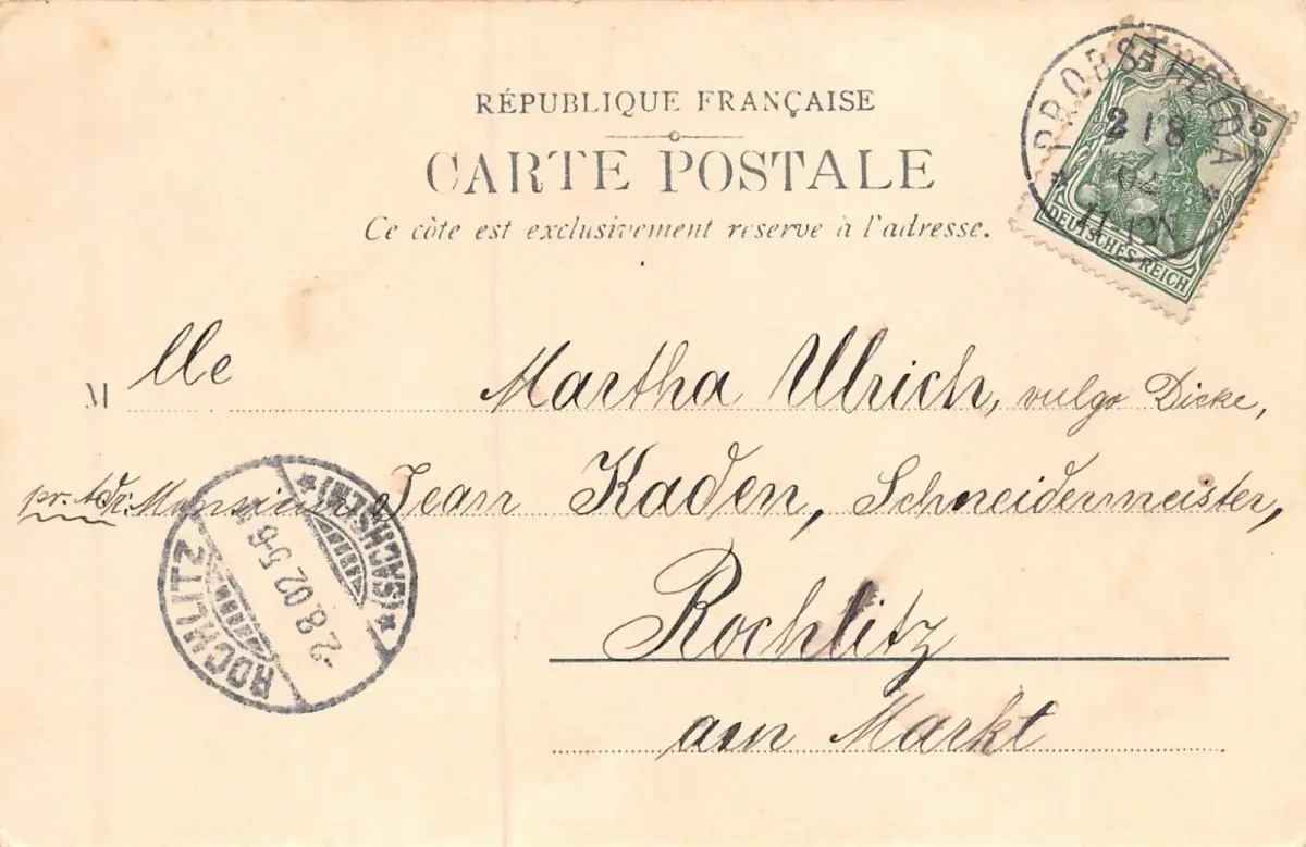 Rückseite: gelaufen 1902 nach Rochlitz (Sachsen)