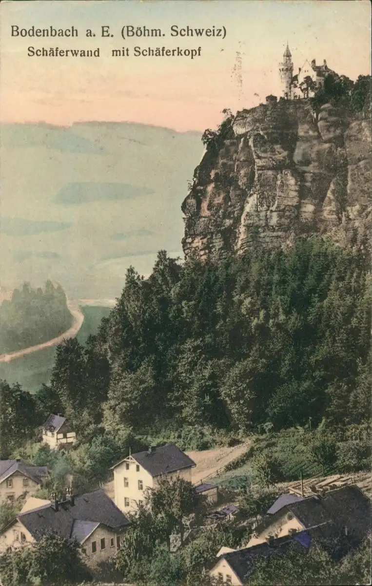 Tetschen-Bodenbach Decín Bergschloß Schäferwand Häuser 1913 Böhmen Bohemia