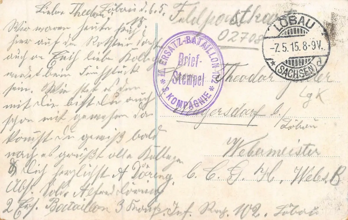 Rückseite: gelaufen 1915