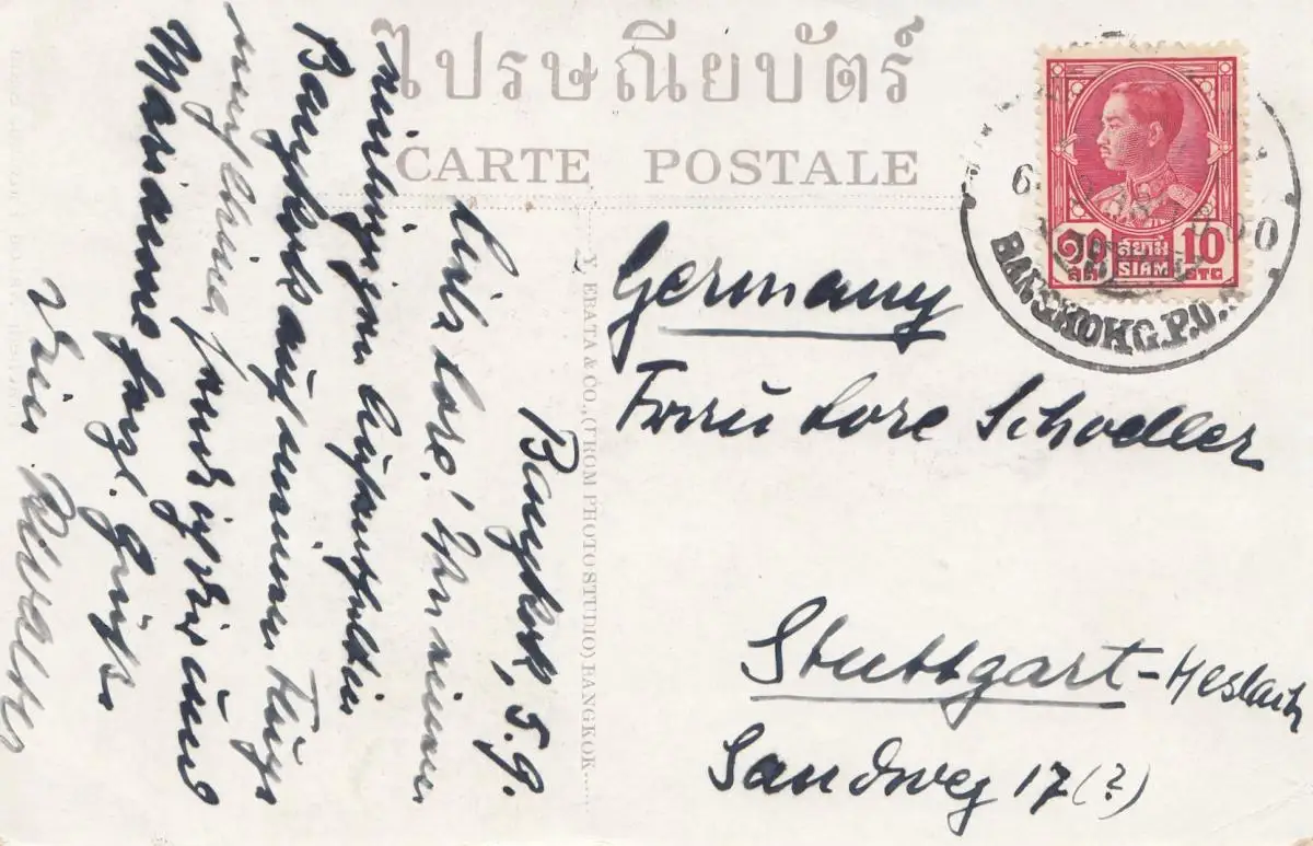 Thailand 1938: post card Prachedi Nakon Pathom, Siam to Stuttgart