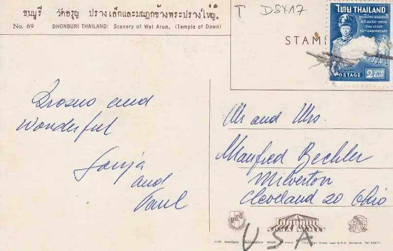 Thailand Scenery of Wat Arun (Temple of Dawn) glum 1960? D8417
