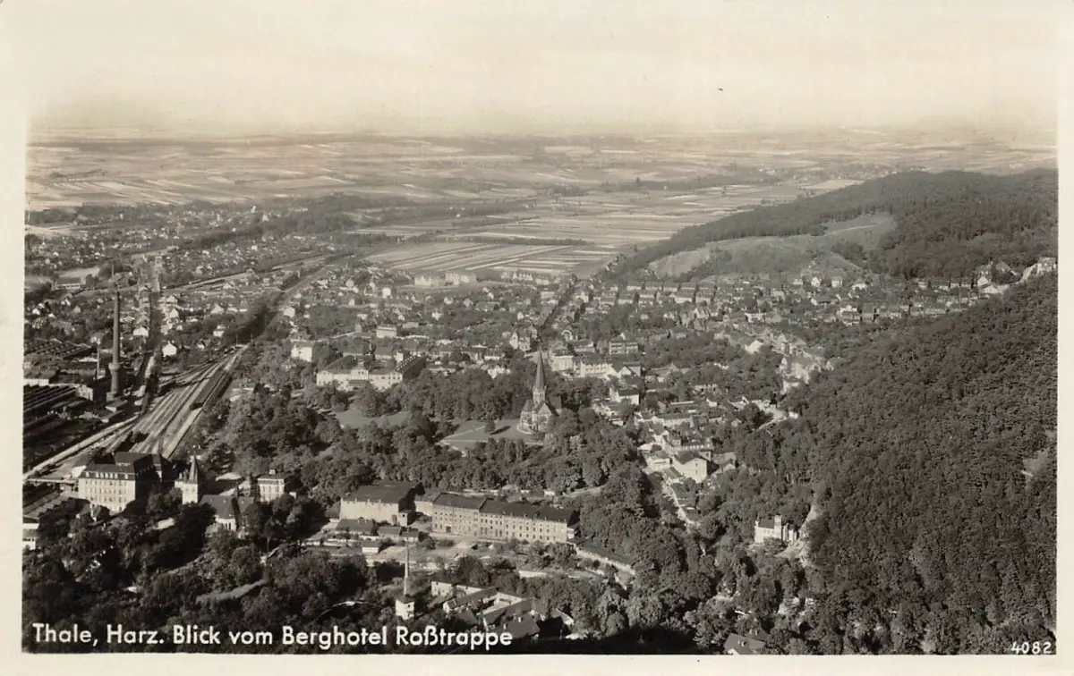 Thale Harz Blick vom Berghotel Roßtrappe Postkarte AK