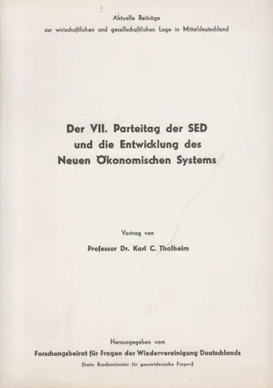 Thalheim, Karl C: Der VII. Parteitag der SED und die Entwicklung des Neuen Ökonomischen Systems. Vortrag. Aktuelle Beiträge zur wirtschaftlichen und gesellschaftlichen Lage in Mitteldeutschland. Herausgegeben vom Forschungsrat für Fragen der Wiedervereini