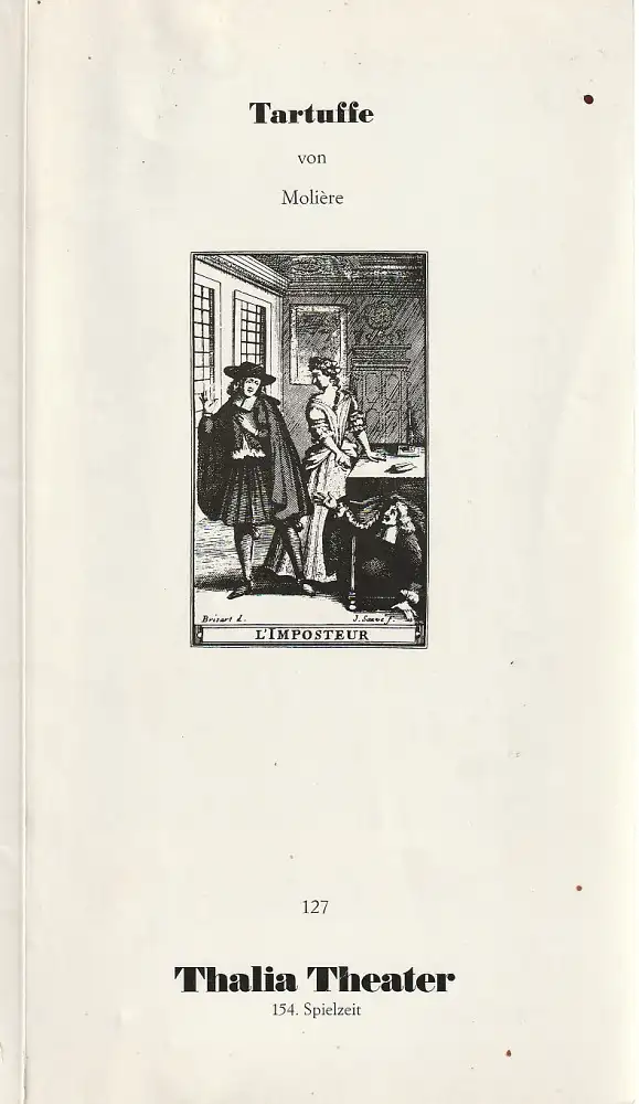 Thalia Theater, Jürgen Flimm, Heinz-Werner Köster, Ludwig von Otting, Wolfgang Wiens, Hermann und Clärchen Baus (Probenfotos): Programmheft Moliere TARTUFFE Premiere 21. Dezember 1996 Spielzeit 1996 / 97 154. Spielzeit Heft 127.