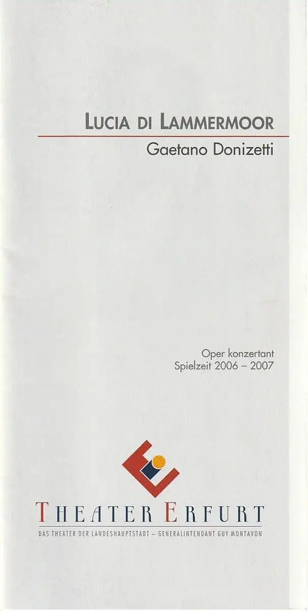 Theater Erfurt, Guy Montavon, Ruth Hardt: Programmheft Gaetano Donizetti LUCIA DI LAMMERMOOR Premiere 16. Februar 2007 Spielzeit 2006 / 07.