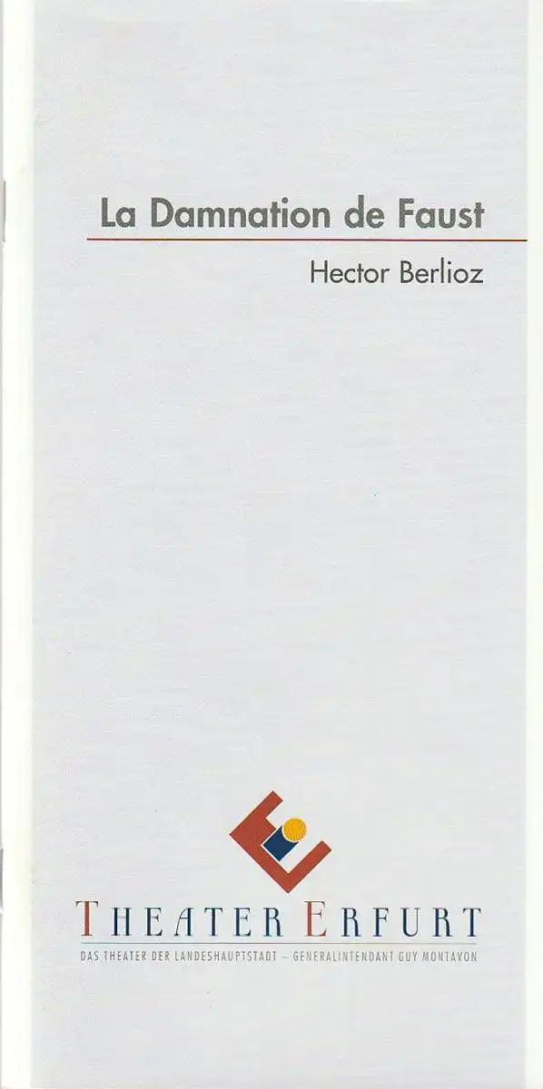 Theater Erfurt, Guy Montavon, Ruth Hardt: Programmheft Hector Berlioz LA DAMNATION DE FAUST Premiere 12. April 2003 Spielzeit 2002 / 03.