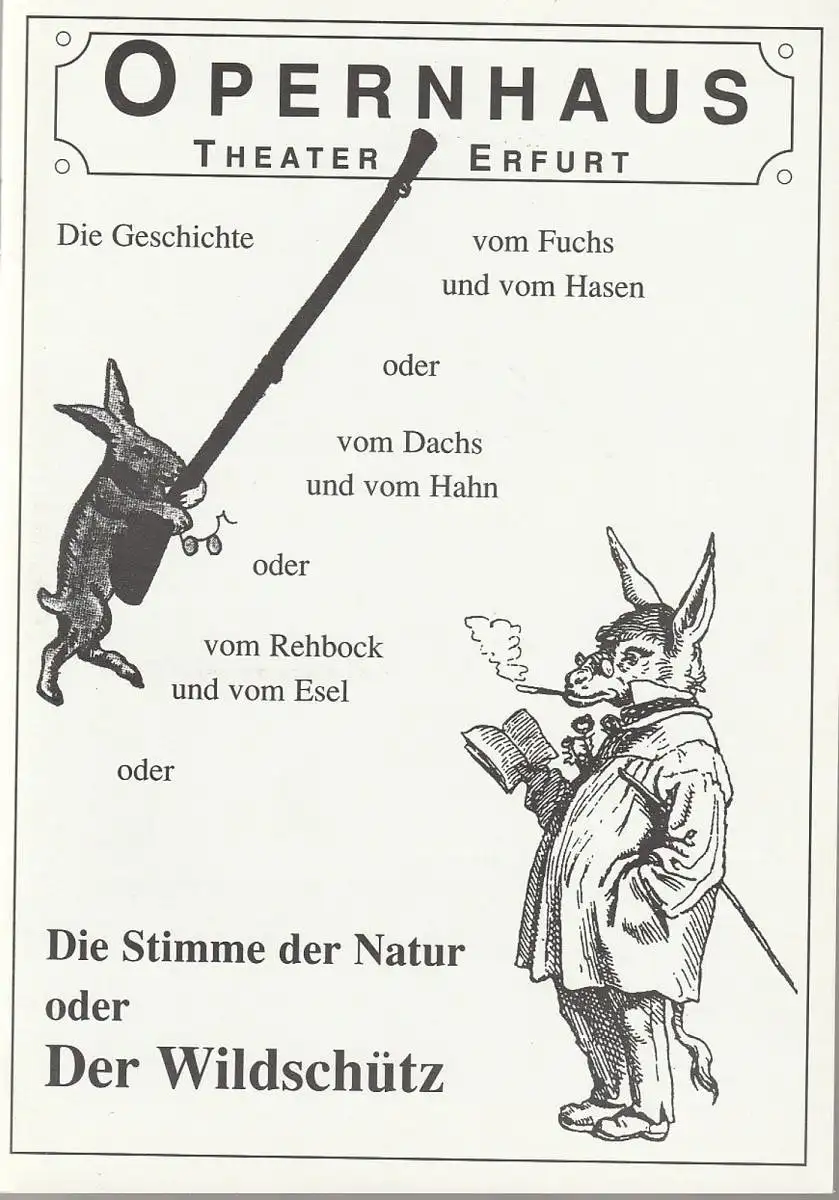 Theater Erfurt Opernhaus, Dietrich Taube, Ute Unger: Programmheft Albert Lortzing DER WILDSCHÜTZ Premiere 14. Januar 1995 Spielzeit 1994 / 95 Nr. 4.