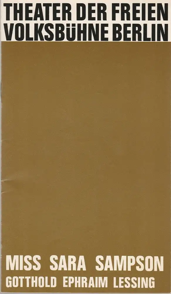 Titel: Programmheft Gotthold Ephraim Lessing MISS SARA SAMPSON Premiere 6. September 1972