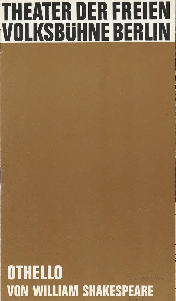 Theater Freie Volksbühne, Horst Balzer: Programmheft OTHELLO. Trauerspiel von William Shakespeare Premiere 12. April 1973 Spielzeit 1972 / 73 Heft 6.