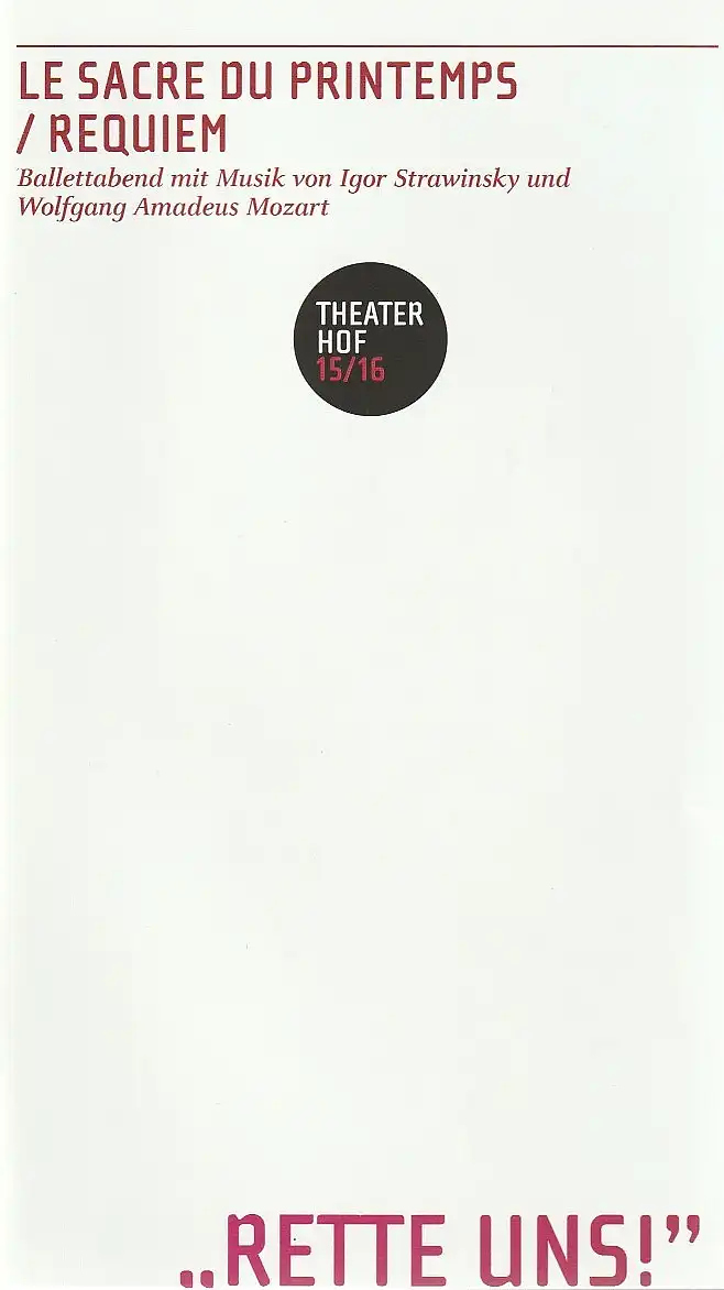 Theater Hof, Reinhardt Friese, Lothar Krause: Programmheft BALLETTABEND LE SACRE DU PRINTEMPS / REQUIEM Premiere 22. Januar 2016 Großes Haus Spielzeit 2015 / 16.