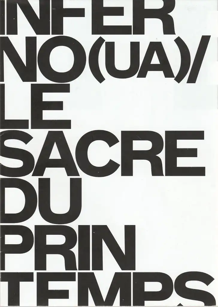 Ballett von Michal Sedlacek und Ralf Rossa mit Musik von Enric Palomar und Igor Strawinsky. Musikalische Leitung: Michael Wendberg. Choreographie Inferno: Michael Sedlacek. Choreographie Le sacre du printemps: Ralf Rossa. Bühne: Matthias Hönig. Kostüme: Cordula Erlenkötter. Solisten Inferno: Jhan Plaitano / Enno Kleinehanding, Pietro Chiappara / Martin Zanotti. Solisten Sacre: Yulia Gerbyna / Laura Busquets Garro, Ayana Kamemoto / Hyona Lee, Enno Kleinehanding / Johan Plaitano, Dalier Burchanow / Pietro Ciappara, u. a. - Theaterprogramm, Opernprogramm, Ballettprogramm, Musicalprogramm, Konzertprogramm, Theatermemorabilia, Programmhefte Sammlung, deutsche Theatergeschichte.