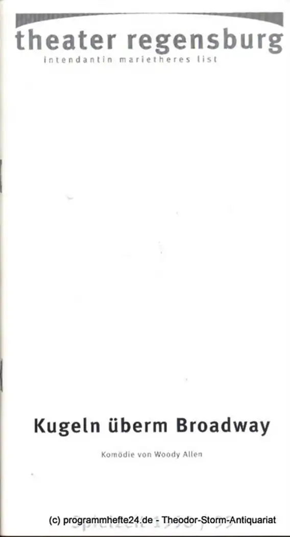 Theater Regensburg, Intendantin Marietheres List, Thutewohl Christa-Renate: Programmheft Woody Allen Kugeln überm Broadway Premiere 14. April 1999 Velodrom Spielzeit 1998 / 99 Heft 17.