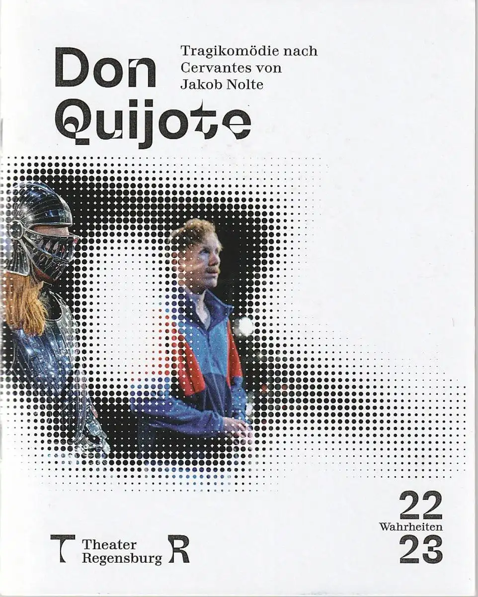 Tragikomödie nach Miguel de Cervantes Saavedra. Regensburger Erstaufführung. Inszenierung: Gustav Rueb. Ausstattung: Christiane Hilmer. Musik: Jonas Julian Niemann. Mitwirkende: Paul Wiesmann, Jonas Julian Niemann. - Theaterprogramm, Opernprogramm, Ballettprogramm, Musicalprogramm, Konzertprogramm, Theatermemorabilia, Programmhefte Sammlung, deutsche Theatergeschichte.