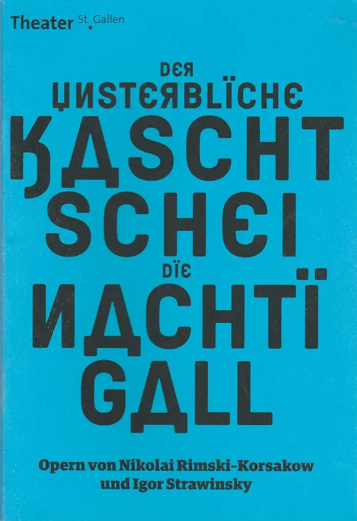 Musik: Nikolai Rimski-Korsakow / Igor Strawinsky. Musikalische Leitung: Modestas. Inszenierung: Dirk Schmeding. Bühne: Martina Segna. Kostüme: Frank Lichtenberg. Video: Johannes Kulz. Mitwirkende: Riccardo Botta, Ieva Prudnikovaite, Tatjana Schneider, Shea Owens, Martin Summer / Sheida Damghani, David Maze, Shea Owens, Tatjana Schneider, Nik Kevin Koch, Martin Summer, Ieva Prudnikovaite, Thea Pestalozzi / Elias Podolski, Iskander Turiare , Robert Virabyan, Chor des Theaters St. Gallen - Theaterprogramm, Opernprogramm, Ballettprogramm, Musicalprogramm, Konzertprogramm, Theatermemorabilia, Programmhefte Sammlung, deutsche Theatergeschichte.