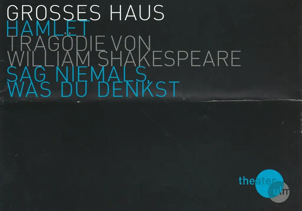 Hamlet. Sag niemals was Du denkst. Tragödie. IT Stephan Suschke. Bühne und Kostüme: Mona Hapke. Mitwirkende: Volkram Zschiesche, Thomas Kollhoff, Christel Mayr, Wilhelm Schlotterer, Johanna Paschinger, Raphael Westermeier, u. a. - Theaterprogramm, Opernprogramm, Ballettprogramm, Musicalprogramm, Konzertprogramm, Theatermemorabilia, Programmhefte Sammlung, deutsche Theatergeschichte.