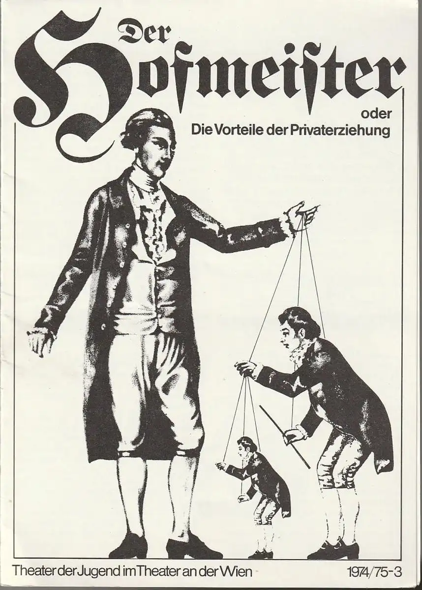 Theater der Jugend im Theater an der Wien, Bernd Gallob, Edwin Zbonek, Alfons Kozeluh, Walter Hills: Programmheft Jakob Michael Reinhold Lenz DER HOFMEISTER 28. November 1974.