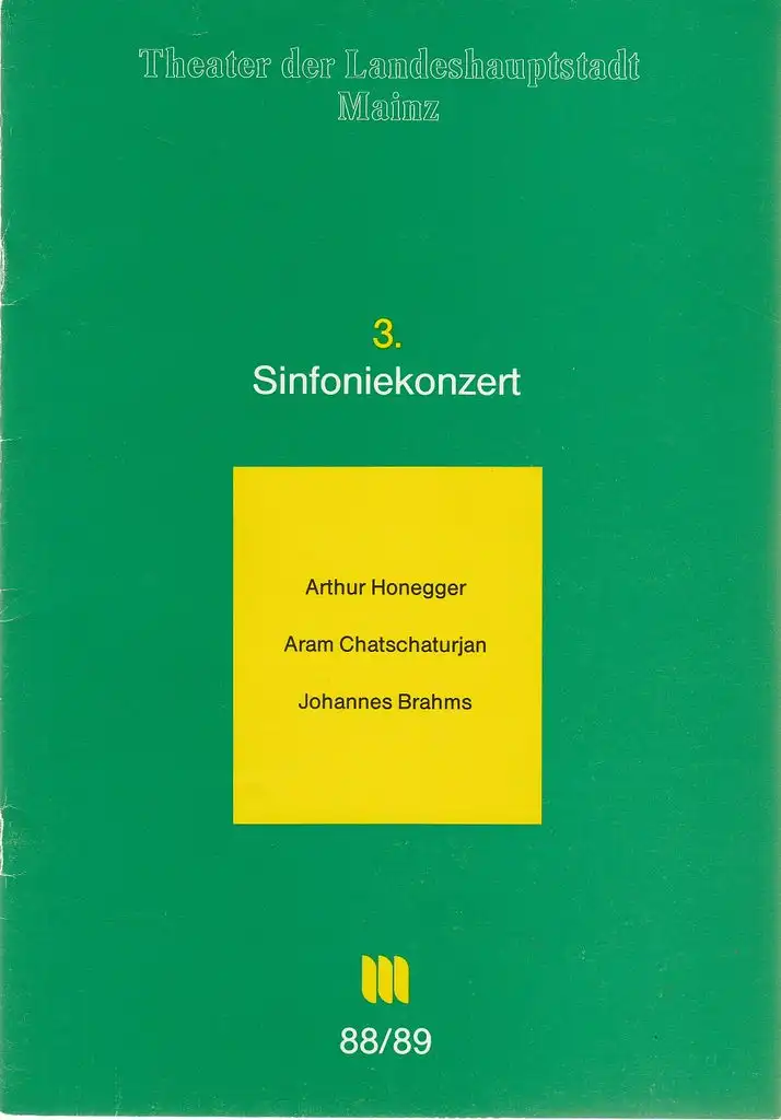 Titel: Programmheft 3. SINFONIEKONZERT Philharmonisches Orchester der Landeshauptstadt Mainz 4. + 5. November 1988 Spielzeit 1988 / 89 Mainzer Konzertheft Nr. 3