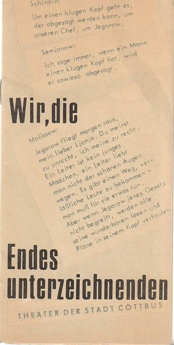 Theater der Stadt Cottbus, Johannes Steurich, Jutta Maria Winkler, Hans-Hermann Liebrecht, Walter Böhm: Programmheft Alexander Gelman WIR DIE ENDESUNTERZEICHNENDEN Premiere 31. Januar 1986 Spielzeit 1985 / 86 Heft 6.
