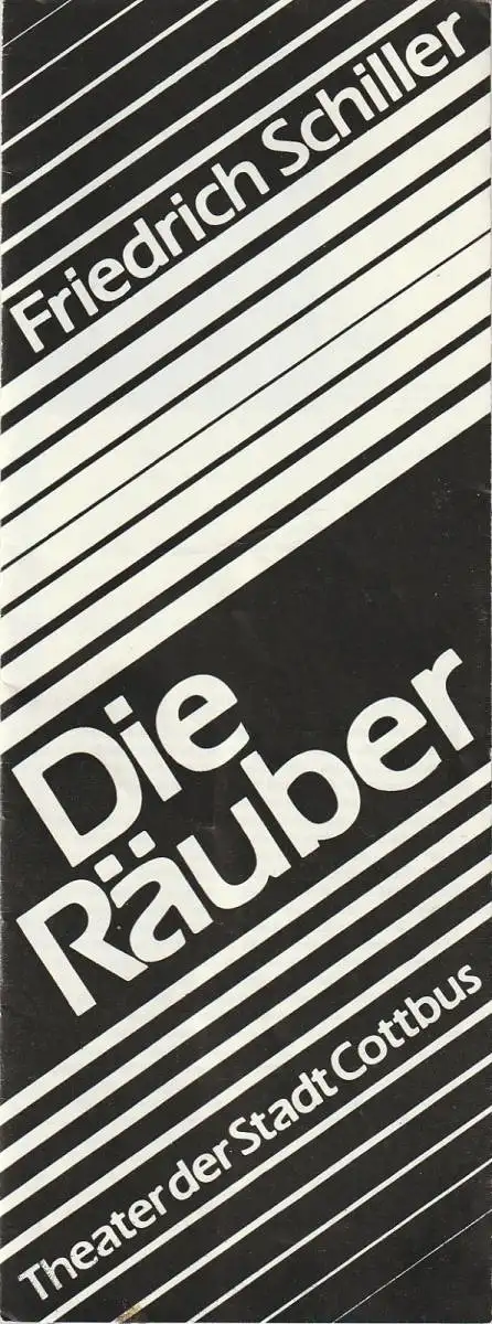 Schauspiel. Regiefassung des Theaters der Stadt Cottbus unter Benutzung der Trauerspielfassung und des Mannheimer Soufflierbuches. Regie: Dieter Roth. Mitregie: Siegfried Wallendorf. Bühne: Christine Schmutzler. Musik: Wolf-Günter Leidel. Regieassistenz: Sibylle Falkenau. Mitwirkende: Burkhard Plettau, Michael Krieg-Helbig, Frank Dettmann, Heidrun Timm, Peter Volksdorf, Reinhold Koch, u. a. - Theaterprogramm, Opernprogramm, Ballettprogramm, Musicalprogramm, Konzertprogramm, Theatermemorabilia, Programmhefte Sammlung, deutsche Theatergeschichte.