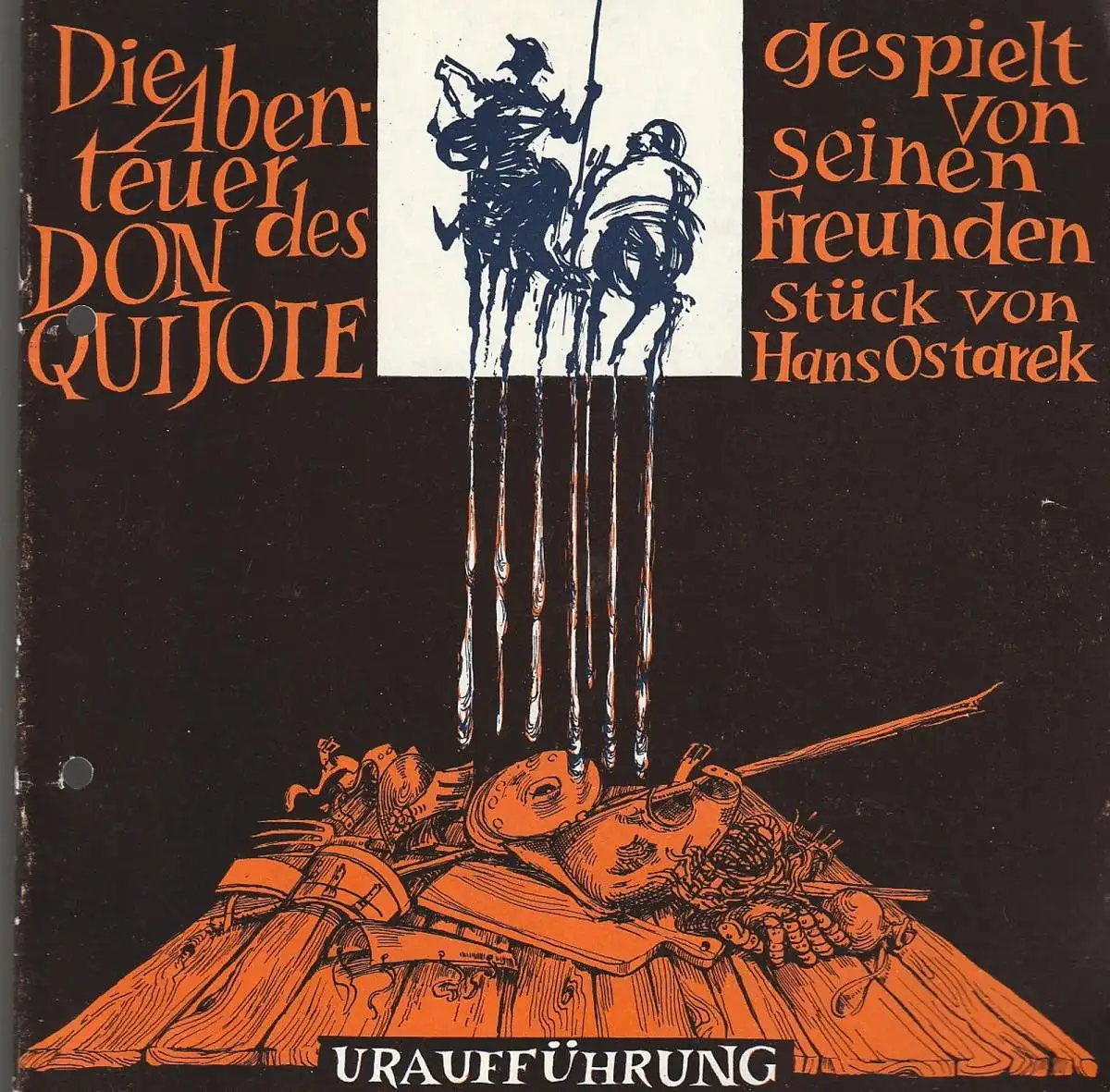 Frei nach Cervantes von Hans Ostareck. Inszenierung: Siegfried Wallendorf. Ausstattung: Heinz-Dieter Ruhland. Mitwirkende: Mathias Mertens, Rolf-Jürgen Gebert, Petra Blossey, Heidrun Bartholomäus, Frank-Peter Dettmann. Musiker: Ute Kierdorf, Heiner Pegelow, Frank Wocher, Helmut Kirchner, Axel Grüner - Theaterprogramm, Opernprogramm, Ballettprogramm, Musicalprogramm, Konzertprogramm, Theatermemorabilia, Programmhefte Sammlung, deutsche Theatergeschichte.