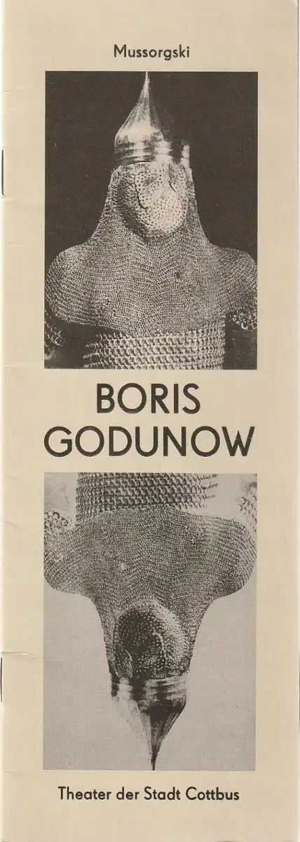 Musikalisches Volkdrama in einem Prolog und vier Akten ( 10 Bildern ) nach Alexander S. Puschkin und Nikolai M. Karamsin. Instrumentation: Dmitri S. Schostakowitsch. Musik: Modest Petrowitsch Mussorgski. Musikalische Leitung: Frank Morgenstern. Inszenierung: Dieter Reuscher. Bühne: Günter Altmann. Herbert B. Voigt. Mitwirkende: Friedrich Krausewald, Helga Rietig, Cornelia Schubert, Marie-Luise Heinritz, Andreas Mühle, Michael Zumpe, Horand Friedrich, Christo Todorov, Rosa Steurich, Wieland Müller, u.a. - Theaterprogramm, Opernprogramm, Ballettprogramm, Musicalprogramm, Konzertprogramm, Theatermemorabilia, Programmhefte Sammlung, deutsche Theatergeschichte.