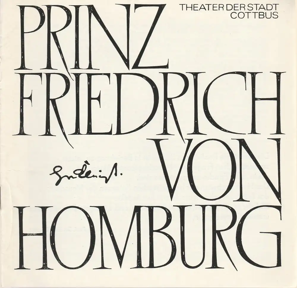 Theater der Stadt Cottbus, Ursula Fröhlich, Monika Runge, Walter Böhm: Programmheft Heinrich von Kleist PRINZ FRIEDRICH VON HOMBURG Premiere 1. November 1975 Spielzeit 1975 / 76 Heft 3.