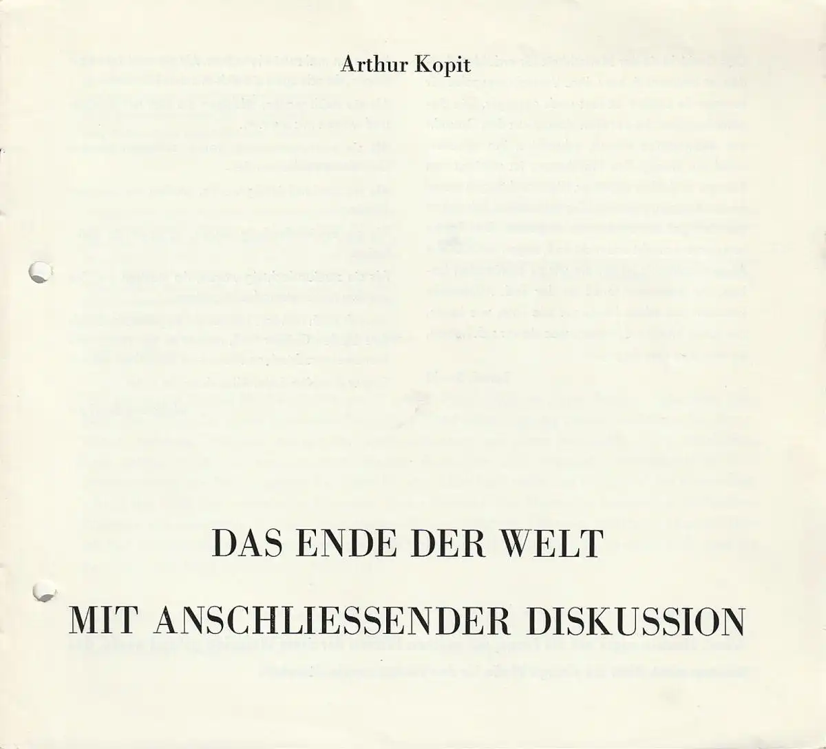 Titel: Programmheft Arthur Kopit DAS ENDE DER WELT MIT ANSCHLIESSENDER DISKUSSION Premiere 5. April 1987 Spielzeit 1986 / 87 Nr. 11