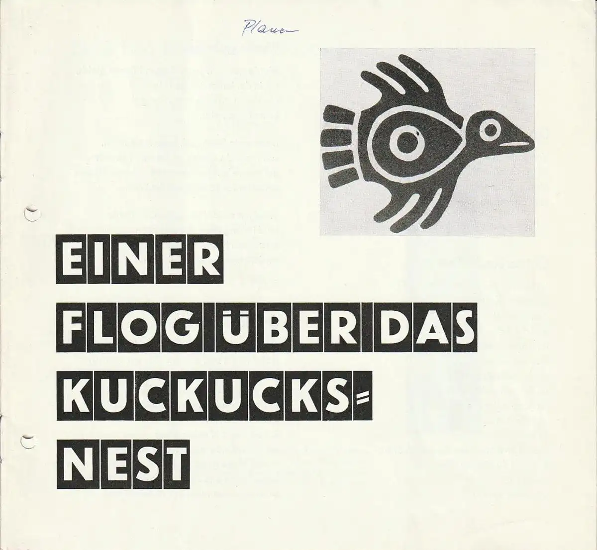 ( One Flew over the Cuckoo´s Nest ). Ein Stück in zwei Akten von Dale Wasserman nach dem gleichnamigen Roman von Ken Kesey. Regie: Lutz Günther. Regie-Mitarbeit: Maria Mägdefrau. Musik: Gottfried Rößler. Ausstattung: Rainer Möllemann. Mitwirkende: Frank Metzger, Dieter Maas, Wolfgang Müller, Maria Meltke, Lilian Rademacher, Helmar Stöß, Lutz Gebhardt, karl Enzmann, Jörg Reimann, u.a. - Theaterprogramm, Opernprogramm, Ballettprogramm, Musicalprogramm, Konzertprogramm, Theatermemorabilia, Programmhefte Sammlung, deutsche Theatergeschichte.
