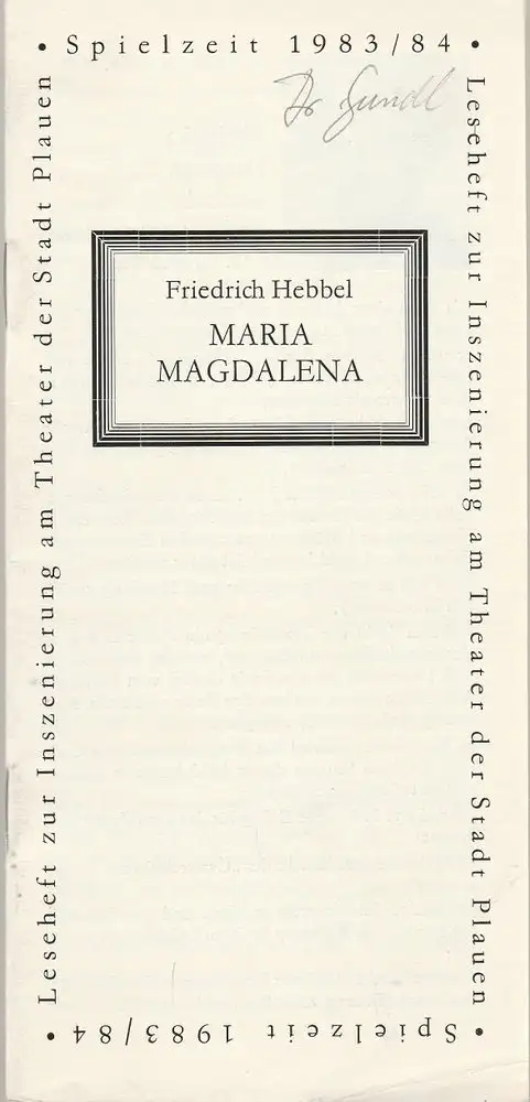 Theater der Stadt Plauen, Werner Friede, Günter Wolgast: Programmheft Friedrich Hebbel, MARIA MAGDALENA Premiere 22. April 1984 Spielzeit 1983 / 84 Heft 11.