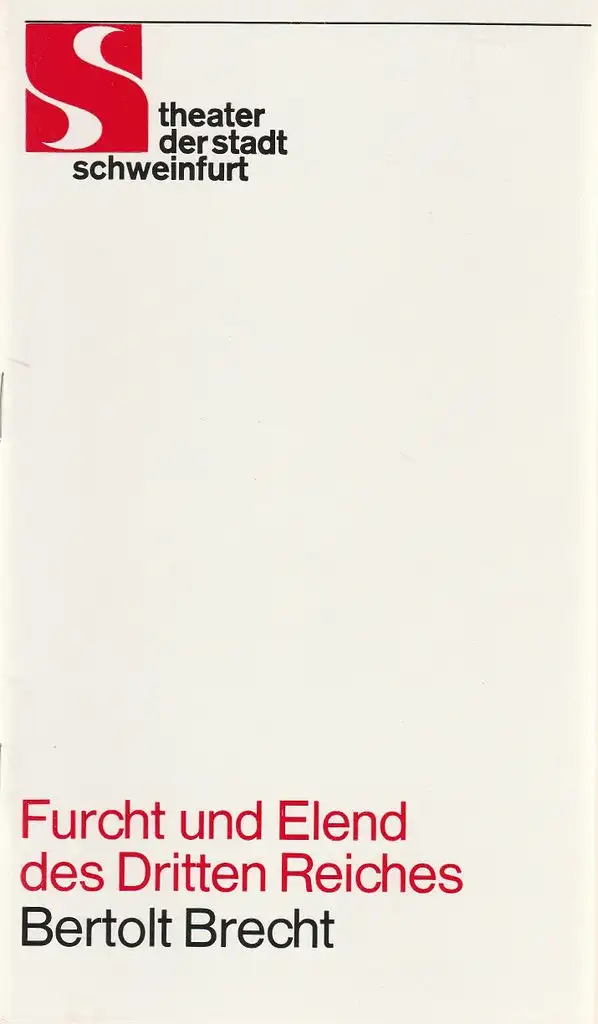 Theater der Stadt Schweinfurt, Günther Fuhrmann, Holger Matthies: Programmheft Bertolt Brecht FURCHT UND ELEND DES DRITTEN REICHES 7. bis 9. November 1977 Spielzeit 1977 / 78 Heft 6.