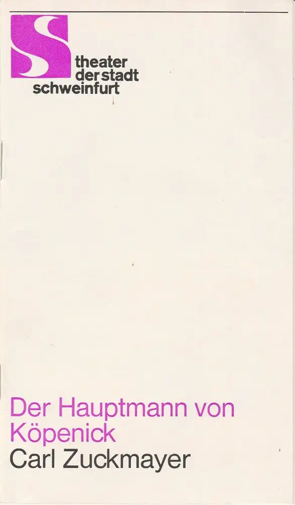 Theater der Stadt Schweinfurt, Günther Fuhrmann: Programmheft Der Hauptmann von Köpenick von Carl Zuckmayer 17. September 1983 Spielzeit 1983 / 84 Heft 1.
