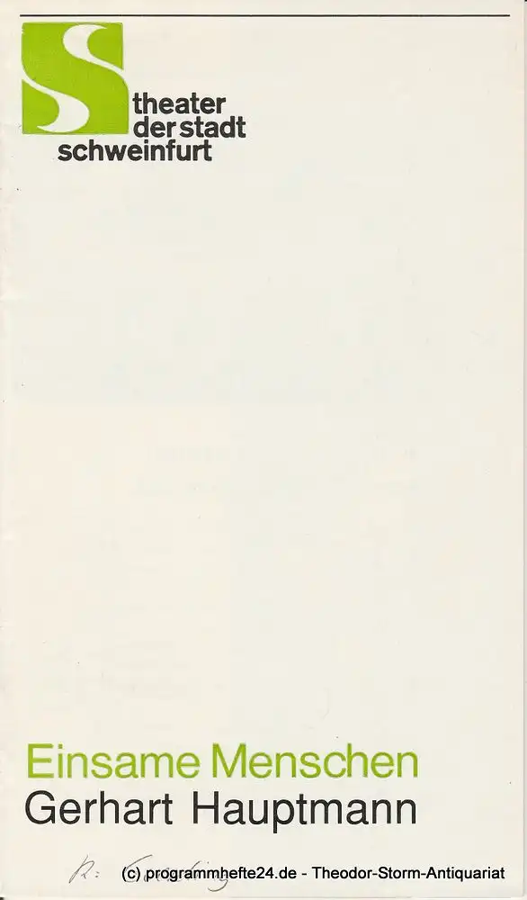 Theater der Stadt Schweinfurt, Günther Fuhrmann: Programmheft Einsame Menschen. Spielzeit 1989 / 90 Heft 13.
