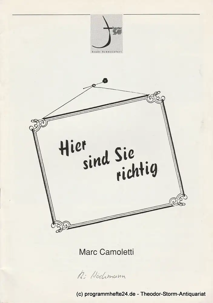 Theater der Stadt Schweinfurt, Rüdiger R. Nenzel: Programmheft Hier sind Sie richtig. Farce von Marc Camoletti. Heft 11 Spielzeit 1991 / 92.