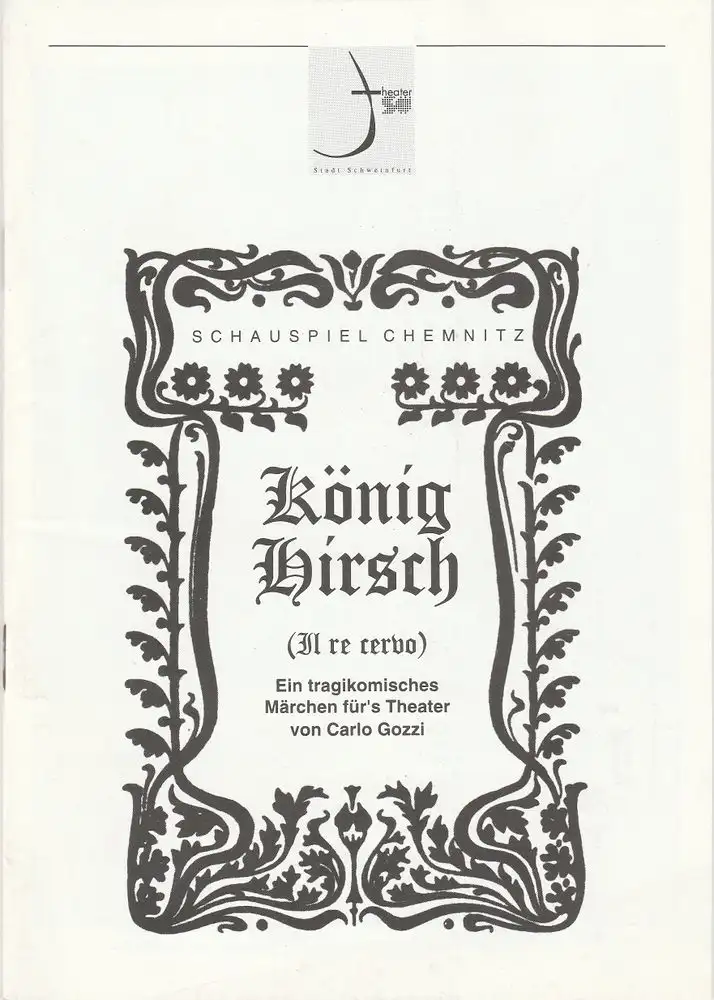 Theater der Stadt Schweinfurt, Rüdiger R. Nenzel: Programmheft KÖNIG HIRSCH. Märchen von Carlo Gozzi 28. April 1997 Spielzeit 1996 / 97 Heft 15.