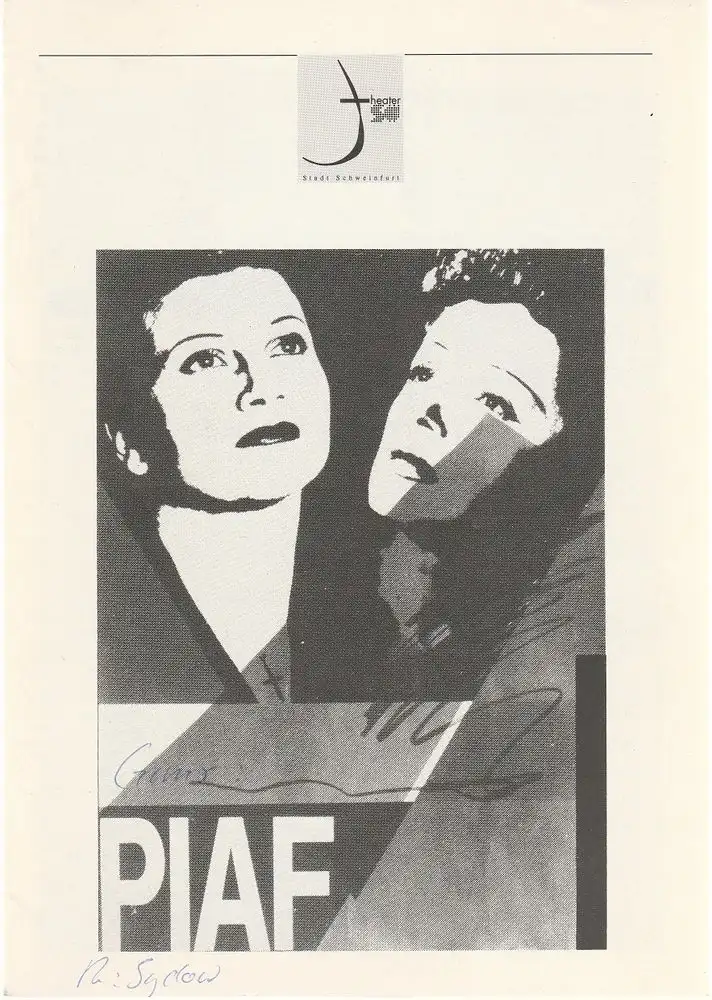 Theater der Stadt Schweinfurt, Rüdiger R. Nenzel: Programmheft Pam Gems: PIAF. Das Leben und die Musik des Spatz von Paris 8. Januar 1993 Spielzeit 1992 / 93 Heft 10.